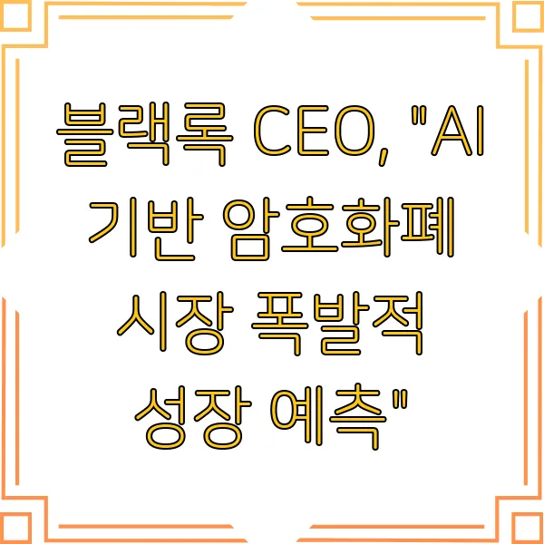 래리 핑크는 AI와 블록체인의 시너지 효과 가 암호화폐 시장의 폭발적인 성장을 촉진할 것이라고 강조했습니다. 단순한 유행어를 넘어, 실제 시장 상황이 이러한 예측을 뒷받침 하고 있다는 점에 주목해야 합니다. 과연 어떤 근거로 이런 확신에 찬 전망을 내놓았을까요? 그의 발언은 암호화폐 시장의 미래를 어떻게 바꿔놓을까요? 지금부터 하나씩 짚어보겠습니다.