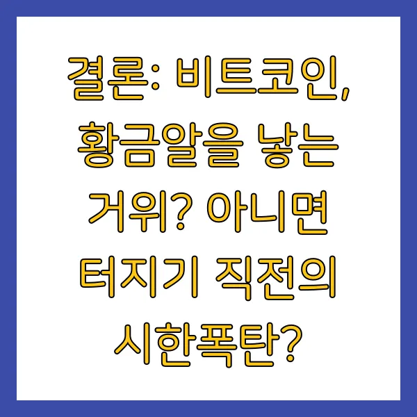 결론: 비트코인, 황금알을 낳는 거위? 아니면 터지기 직전의 시한폭탄?
