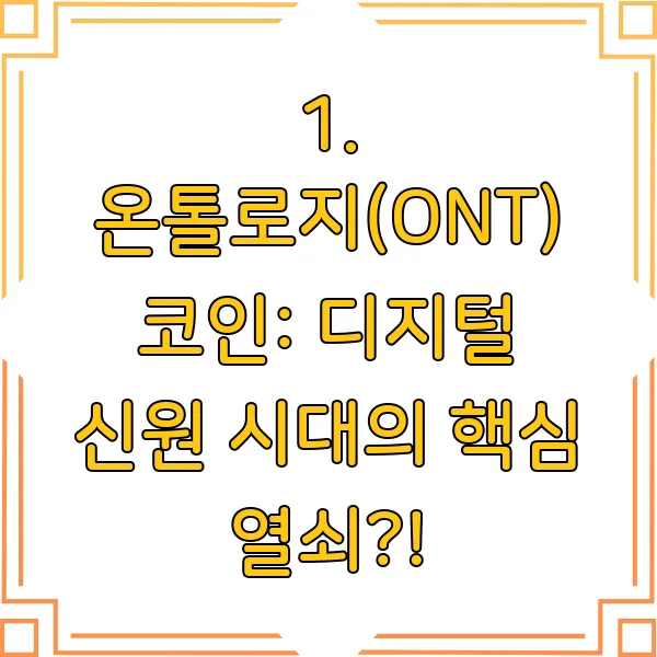 1. 온톨로지(ONT) 코인: 디지털 신원 시대의 핵심 열쇠?!